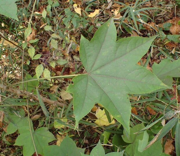 手のひらの様に大きな切れ込みがある葉っぱです。 よ~く見ると、 葉のふちには細かいギザギザもあります。 葉をちぎると独特な香りがします。
