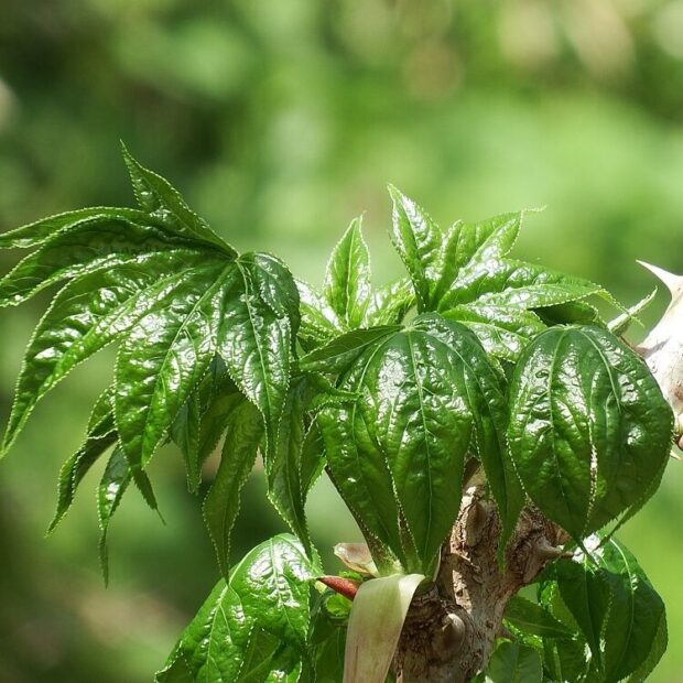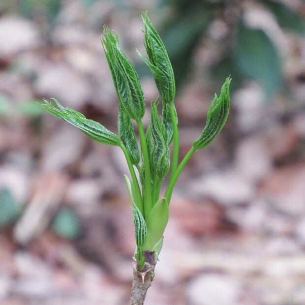 若い葉は食べることが出来ますが、 ややアクが強いので天ぷらがオススメです。 トゲトゲの枝はとり肉の臭みを取るので韓国料理のサムゲタンを美味しくするために使えます。