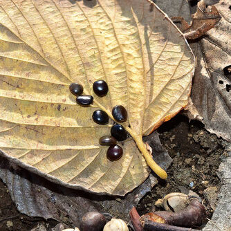 晩秋、 ケンポナシは実を枝ごと落とします。 甘い香りに誘われて動物たちが食べに来ます。 でも、 甘くておいしいのは実ではなく、 実がついている柄!柄をかじるとナシのような、 レーズンのような味わいです。 「落ちてる物を食べてはいけません」とよく言われますが、 ケンポナシの場合は落ちている時こそ食べごろです。