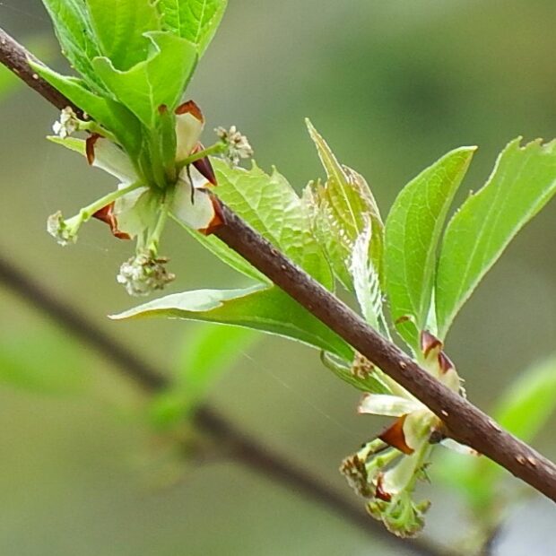 • 雌しべは若葉にかくれるように出てくる