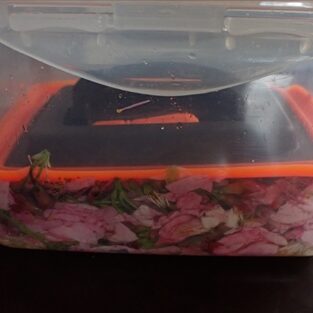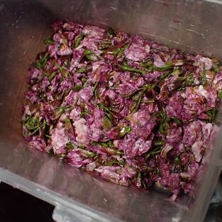 • 2日たったらいったん水気をしぼり、 梅酢をかけてさらに約5日