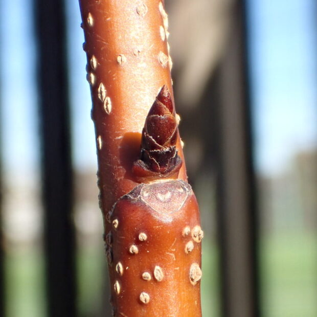 • 若い枝の葉芽はとがる。 お顔もくっきりとしている