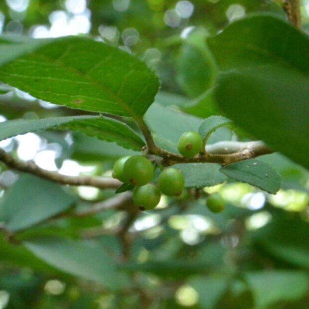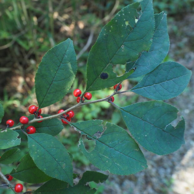 表面はツヤツヤして冬に葉が落ちた後も枝に残って目立ちます。