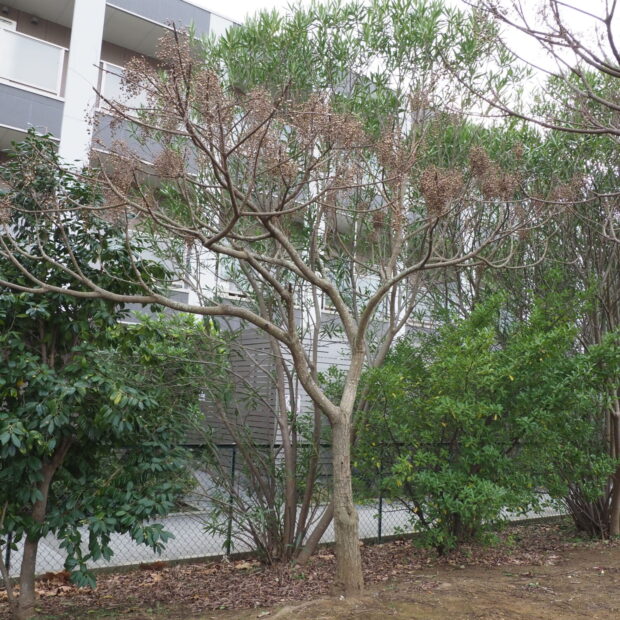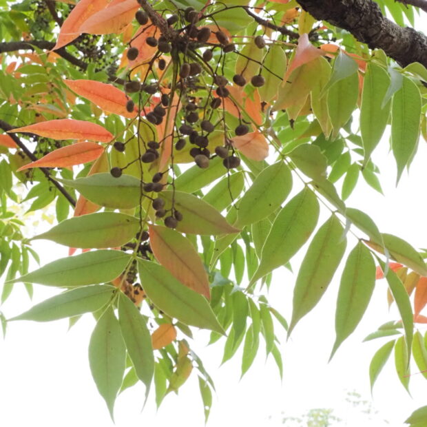 高さ6~10mほどになります。 大きなものは15mにもなります。 小さな葉が羽状に付いた葉っぱが枝先に付き、 枝を大きく広げた樹形になります。