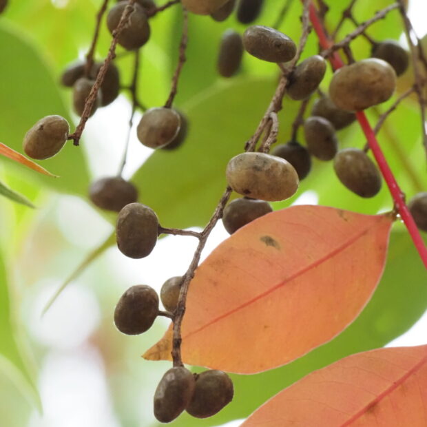 油分がある実を食べに野鳥が集まります。 カラスも大好物です。