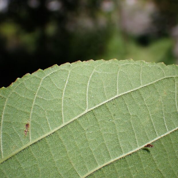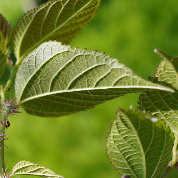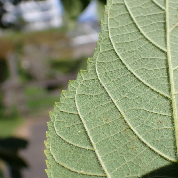 触ると両面に毛があり柔らかい感じがします。 この感じがヤマグワと違うので区別する手がかりになります。