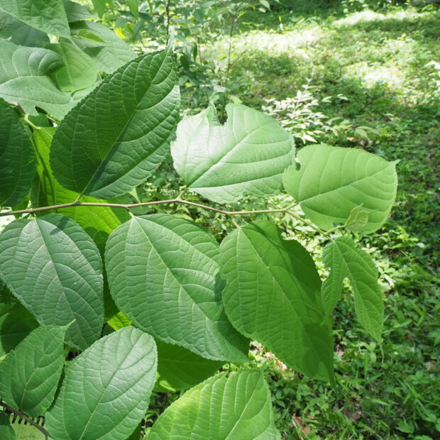 ・カジノキの葉も似ていますが、 カジノキは対生する枝がよく混じっていて、 枝に粗い毛が多く灰色がかった樹皮であることが見分けるポイントになります。