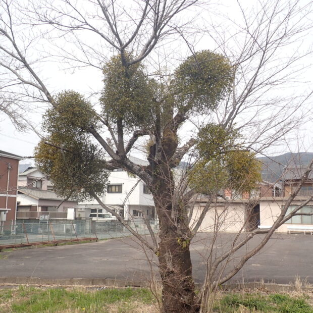 ケヤキ、 エノキ、 サクラなど冬に葉を落とす木の枝や幹にくっ付き宿主から水や養分をもらいながら枝葉を広げ、 生活する木です。 光合成をして自分でも栄養を作るので半寄生種といわれます。 その姿はもじゃもじゃで黄緑色の鳥の巣のように見えます。 一年中葉を付けるので、 特に宿主が葉を落とす冬場はよく目立ちます。