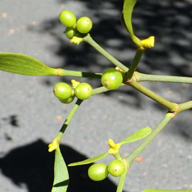 ヨーロッパでクリスマスの飾りに使うヤドリギは実が白いセイヨウヤドリギです。