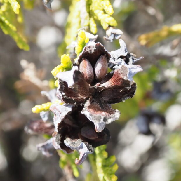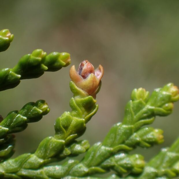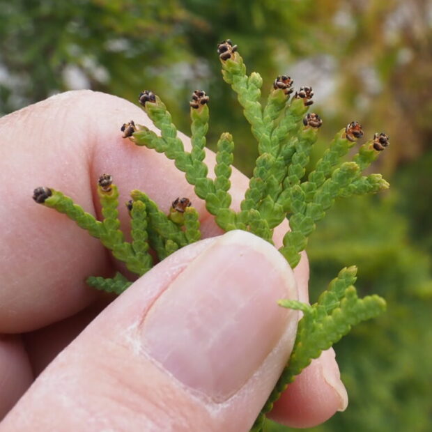 • 長さ2㎜前後の鱗状の葉。 光沢は無く、 ちぎっても香りは弱い