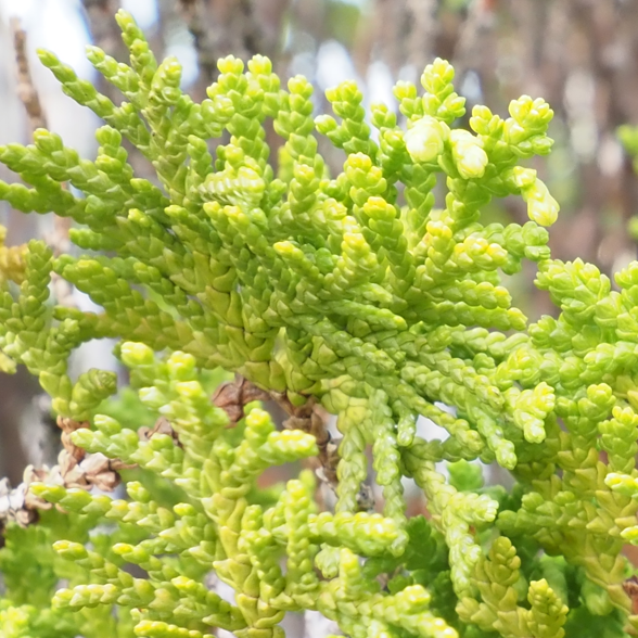 • 春の若葉は淡い黄緑色。 葉はニオイヒバやネズコより小さめ