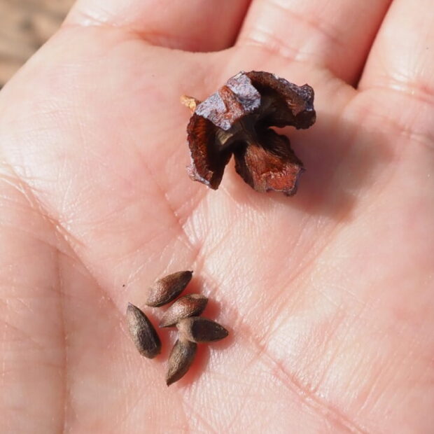 ヤマガラなどの野鳥がタネが食べに来ることがあります。