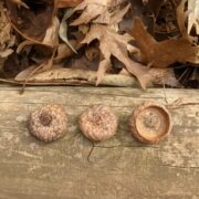 カシワやクヌギのドングリ似て丸っこいドングリですが、 帽子(パンツ?)が独特の形と模様のドングリです。 春に花が咲いて翌年の秋に熟します。