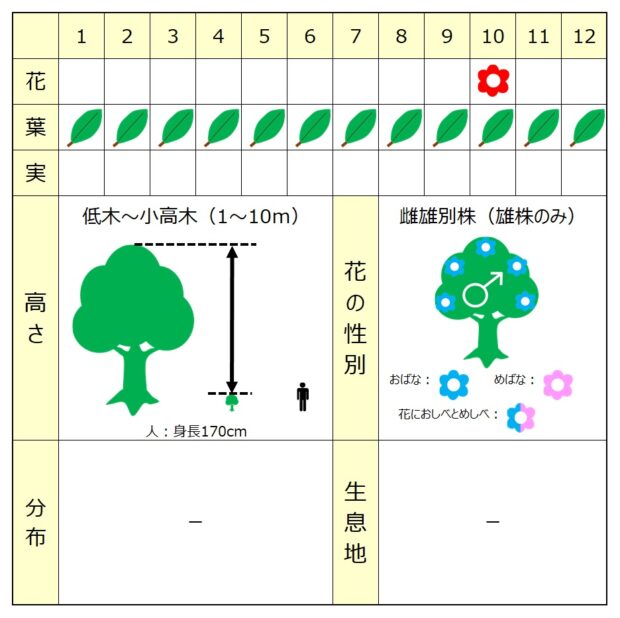 雄の木しかないので、 実がなりません。