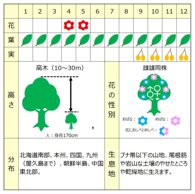 生息地ブナ帯以下の山地、 尾根筋や岩山などの土壌がやせたところや、 乾燥地の生える。 |