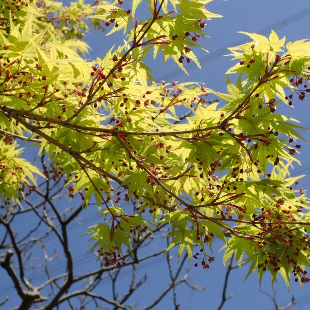花にはいろいろなカミキリムシがやって来ます。 3月中旬、 新芽が芽吹く頃、 モミジニタイケアブラムシが活動を始めます。