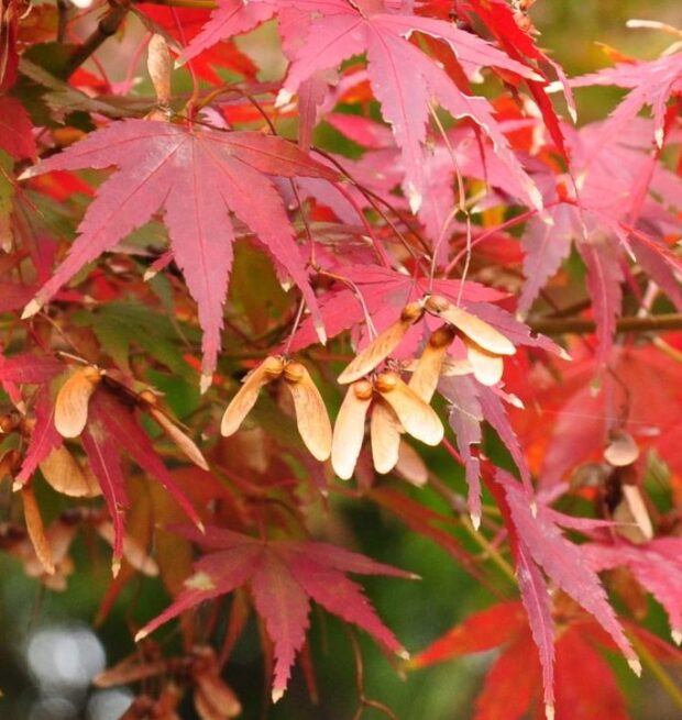 ベニバナの赤い染料を押して出すことを「もみず」と言います。 そこから赤く染まる葉を「モミジ」と呼ぶようになったと言われています。