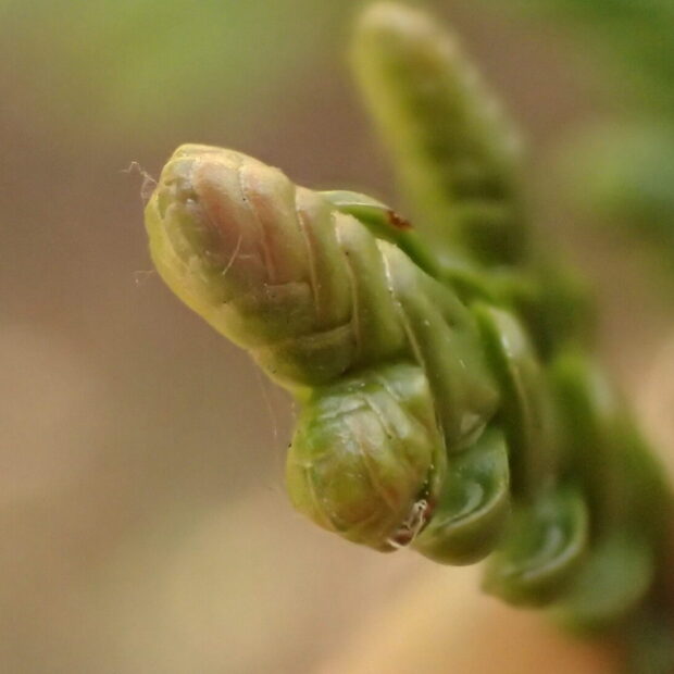 これから伸びてくる十字対生の葉が、 そのままぎゅっと几帳面に詰まった感じに枝の先に用意されています。