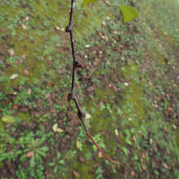 • 側枝(主の枝から出た細い枝)に数枚の葉がつく。 秋の落葉ではほとんどの側枝が落ちる。