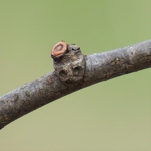 • ふくらんだ落枝痕が目立つ枝