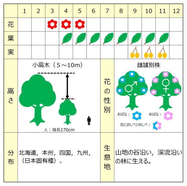 生息地山地の谷沿い、 渓流沿いの林に生える |