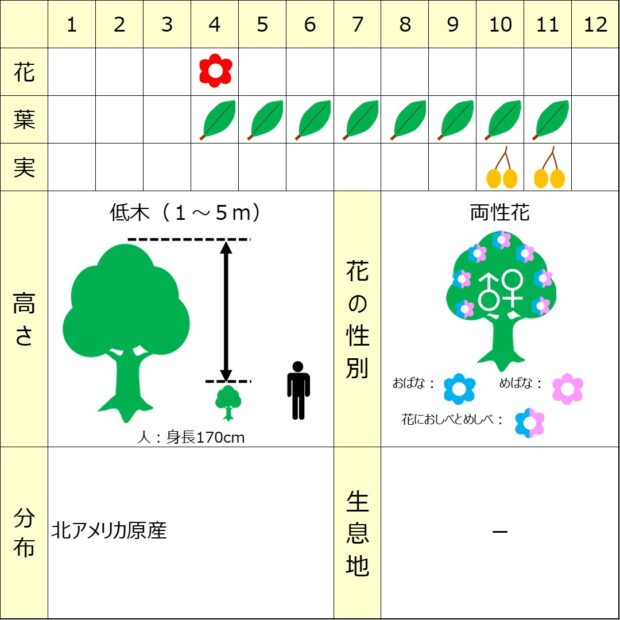 北アメリカ原産の木です。 大正時代のはじめに東京市長からアメリカ合衆国の首都ワシントンへサクラの苗木を贈ったお礼に日本へ贈られました。