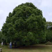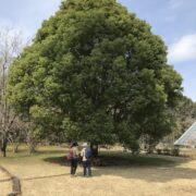 クスノキは、 日本で一番太くなる木です。 日本の巨木1位は、 鹿児島県の「蒲生の大楠(かもうのおおぐす)」と呼ばれるクスノキで、 幹回り24m以上と言われています。 全国の神社にはクスノキの巨樹が多く生えています。 葉は、 爽やかな香りがします。