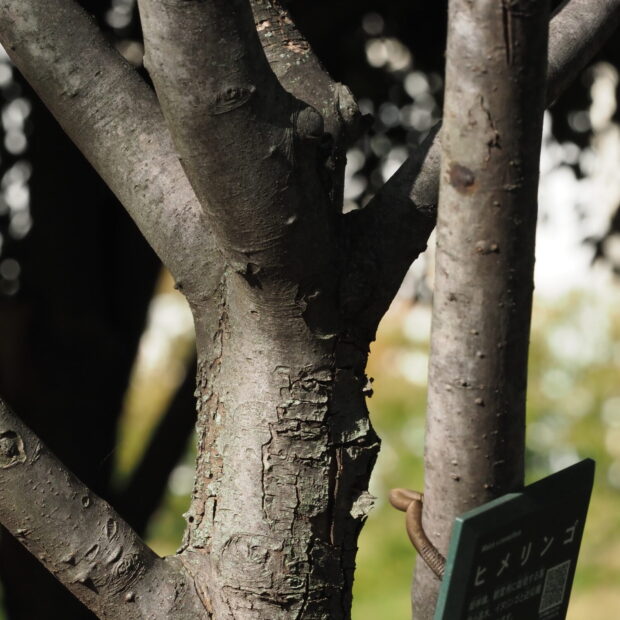 若い樹皮はなめらかで、 太くなってくるとぽろぽろ樹皮が落ちてごつごつしてきます。