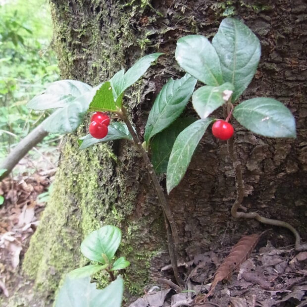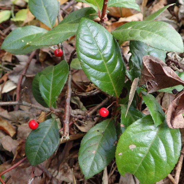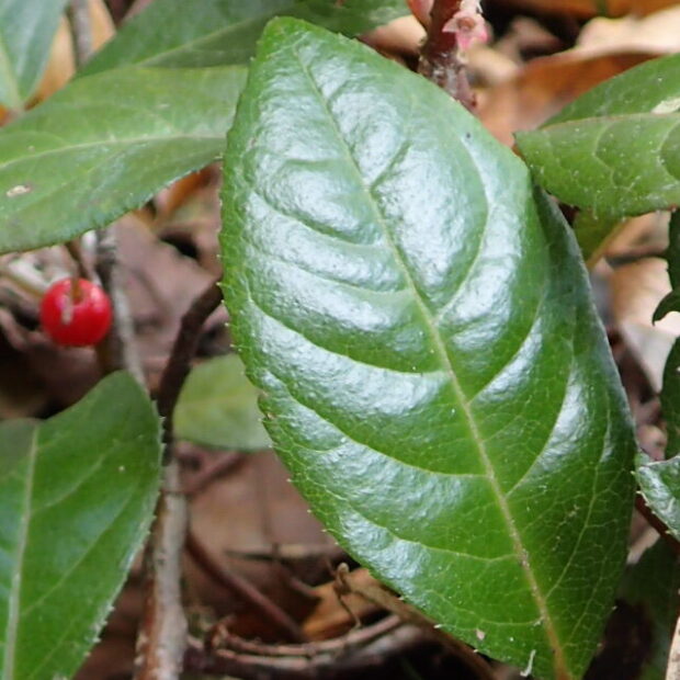 高さ30㎝くらいまで大きくなる常緑小低木です。 地面を這う匍匐茎で横に広がっていきます。
