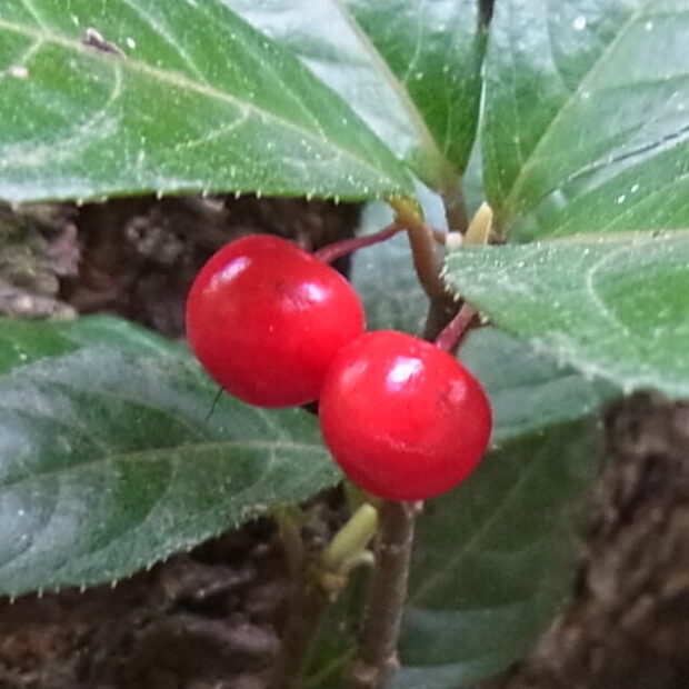 センリョウ、 マンリョウ、 カラタチバナ(百両)と並べて「十両」と呼ばれ縁起が良いということでお正月のお飾りにも使われてきました。