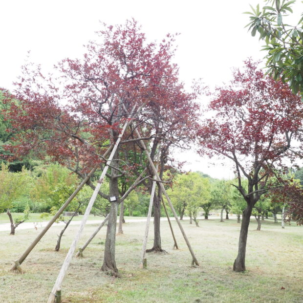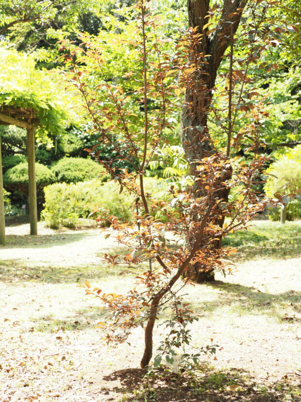 美しい赤紫色の葉の観賞を目的として庭や公園に植えられます。