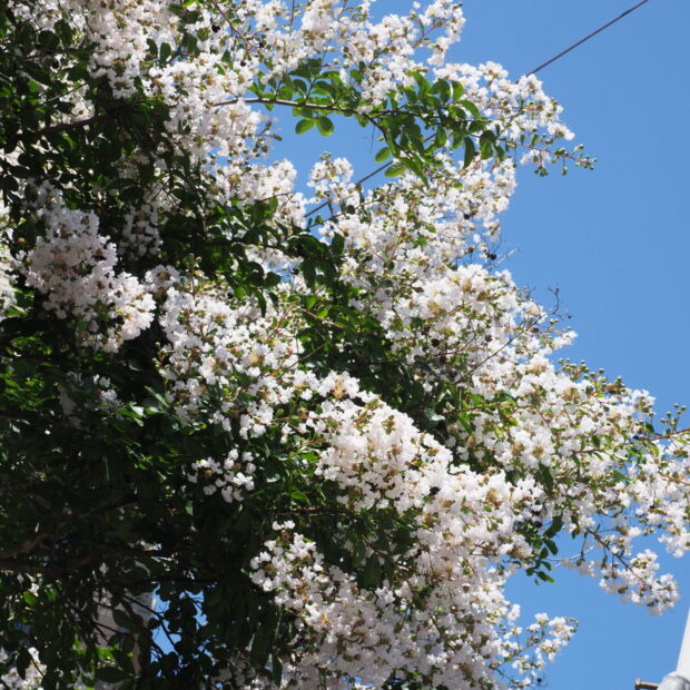 • 白い花のサルスベリも見かける