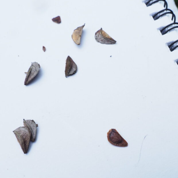 割れてるのを見つけたら中から餃子のような種を見つけてください。