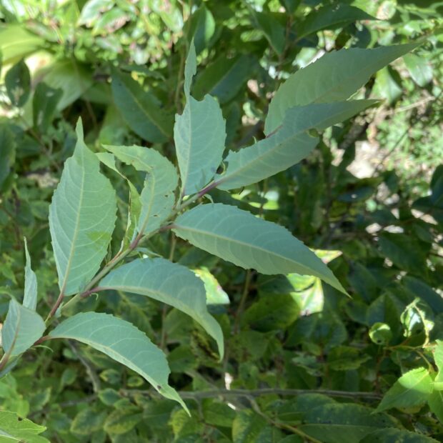 ヤナギの仲間ですが、 ネコヤナギのように花芽がふわふわでもないし、 シダレヤナギのようにサラサラゆれる枝でもないし、 ひかえめな感じ。 でもよく見ると、 葉っぱのギザギザはけっこうするどいし、 冬芽は赤くてツルツルだし、 いいもの持ってる。 それに、 乾燥した斜面や岩場で強く生きています。 見習いたい子です。