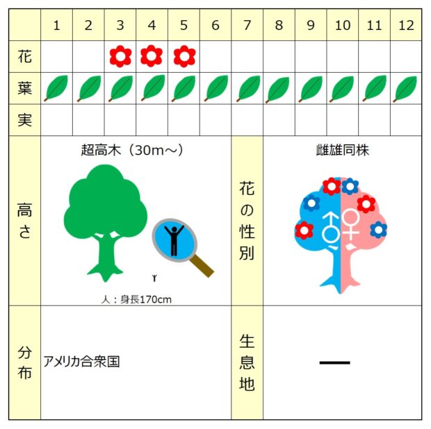 世界で最も高くなる木です。 ふるさとのアメリカ合衆国では115メートルにもなる木があります。
