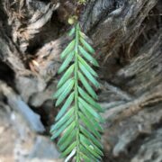 鱗片状の葉で先はとがります。 でも触っても痛くなくて柔らかい葉です。