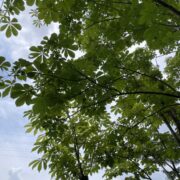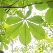 大きな葉をつける大木です。 葉、 花、 実、 それぞれに特徴があるので一度覚えると忘れません。 栗のような種は「とちの実」と呼ばれます。 あくが強く食べるには手間がかかるのですが、 縄文時代から日本人の大切な食料でした。 縄文遺跡からはトチノキを加工した工場も見つかっています。