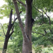 若木のときは滑らかですが、 老木になると皮が大きく裂けてはがれます。