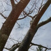 ネムノキは豆の仲間の木なので実は豆のさや型です。 葉が枯れた後もずっと木に残っています。