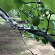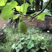 コロッとした実がぶら下がって実ります。 中の種は表面に溝がある面白い形をしています。