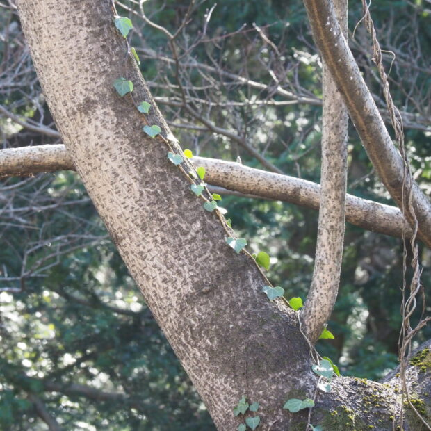 とても小さな種で飛んで隙間に入り、 芽生えは小さいのですが、 そこから驚くほど大きくなります。 いろんな隙間から生えています。 「大きい邪魔だ!」と根元から切られると、 そこからひこばえが伸びて2階まで伸び、 返って大きくなる始末。 まるで巨大化する怪獣みたいな木です。