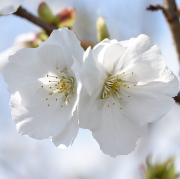 漢字では「太白」と書きます。 その名の通り、 混じりけのない真っ白で大きな花を咲かせるのが特徴です。 一重咲きの桜の中では最大級のサイズで、 花の直径が6cmにも達するほどの迫力があります。
