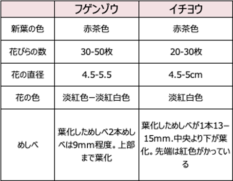 ・フゲンゾウとイチヨウは似ていますが、 雌蕊の形や長さなどに違いがあります。 (2枚目の画像参照)
