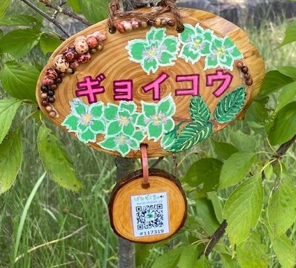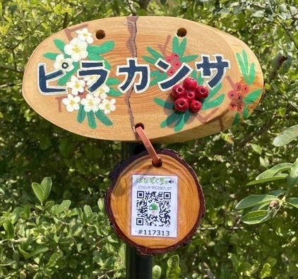 スマホで「はなもく散歩」樹名板のQRコードを読むだけで木の音声ガイドやクイズなどが楽しめます。