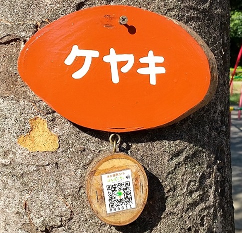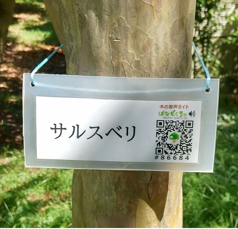 スマホで「はなもく散歩」樹名板のQRコードを読むだけで木の音声ガイドやクイズなどが楽しめます。