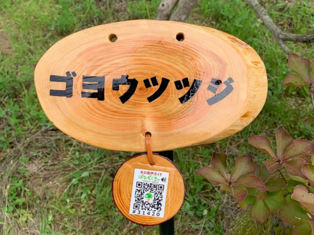 スマホで「はなもく散歩」樹名板のQRコードを読むだけで木の音声ガイドやクイズなどが楽しめます。