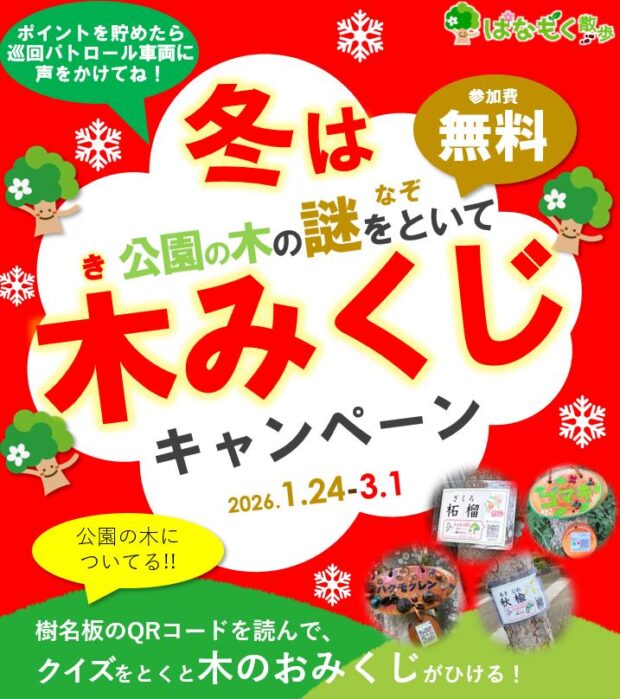 ⚫︎30ポイントで木のおみくじが1回まで引けます。 生き物カードは1枚もらえます。 ポイントを貯めたら巡回パトロール車両に声をかけてください。