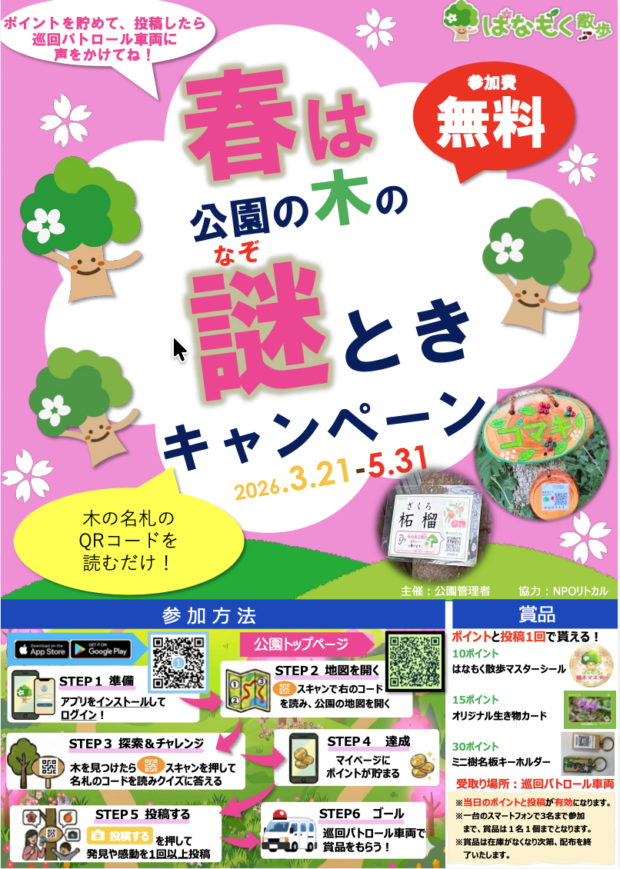 木の名札を見つけてQRコードを読みクイズに答えるとオリジナル賞品がもらえます!!