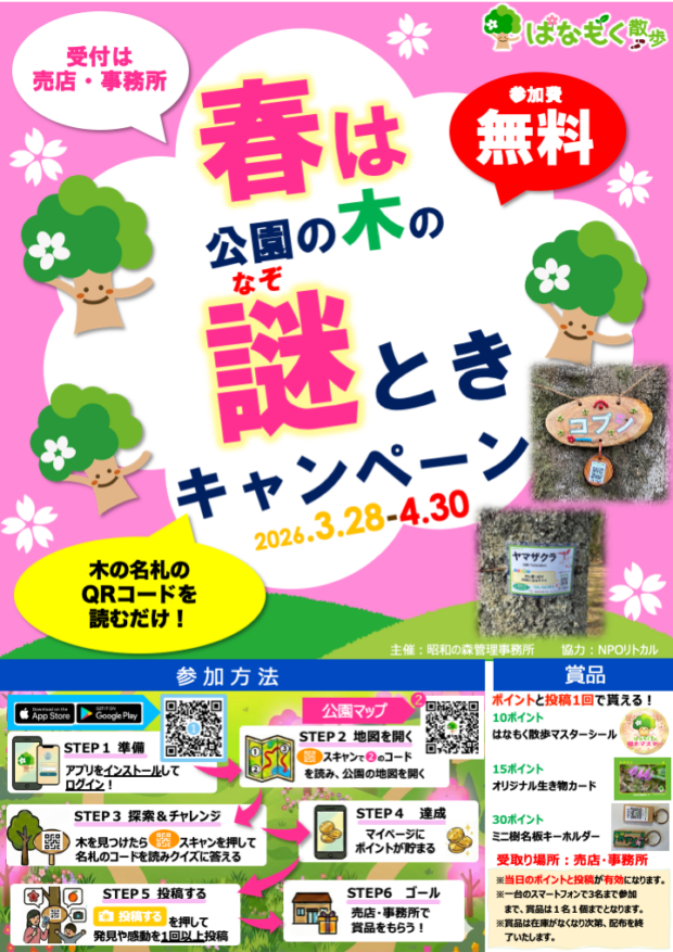 春のおすすめコースの木を見つけてクイズに答えるとオリジナル賞品がもらえます!!