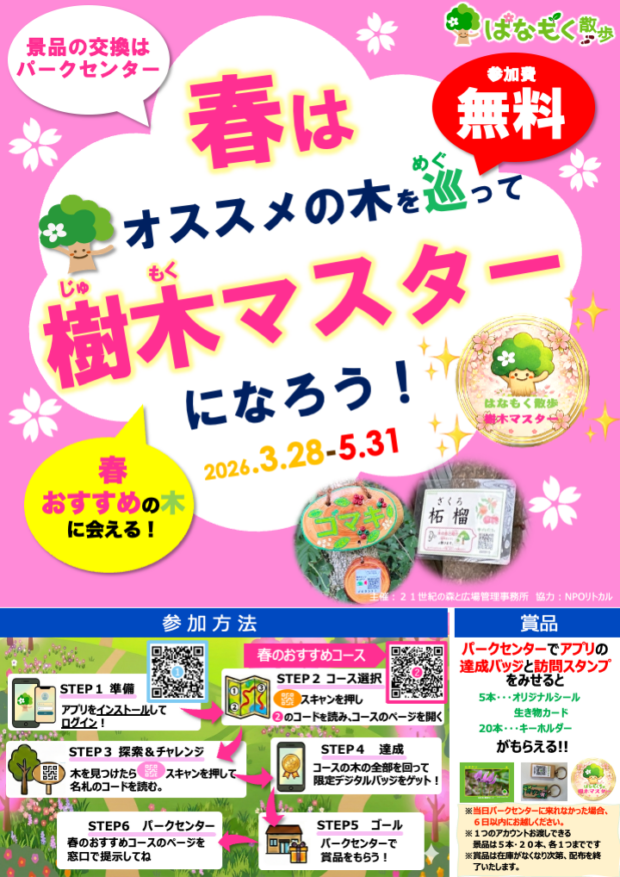 春のおすすめコースの木を見つけてクイズに答えるとオリジナル賞品がもらえます!!